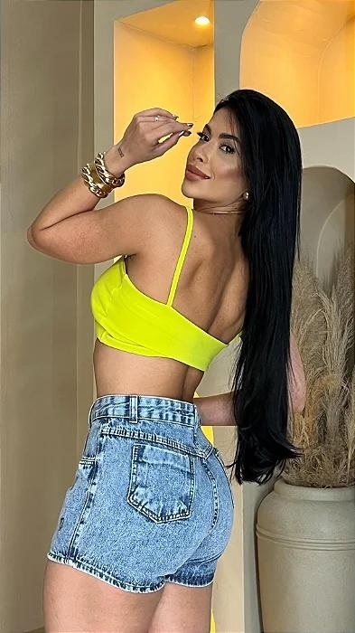Os bordados de corações brancos trazem um ar meigo e atemporal, tornando o short perfeito para produções leves e sofisticadas.
