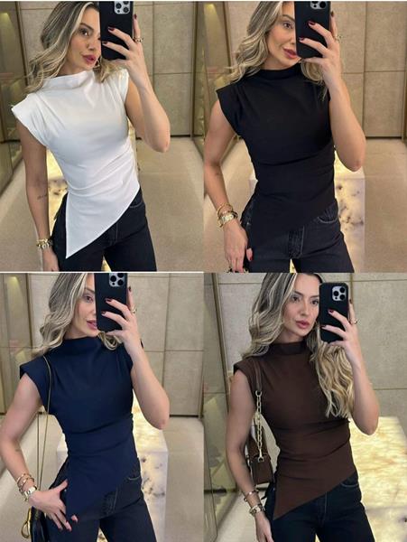 A blusa assimétrica é a peça perfeita para quem ama unir estilo e conforto. Com design moderno e modelagem que valoriza o corpo, ela traz um toque de elegância com sua assimetria delicada. Confeccionada em tecido canelado de ribana, com 96% poliéster e 4% elastano, oferece ótimo caimento e elasticidade, se adaptando perfeitamente ao corpo.