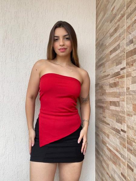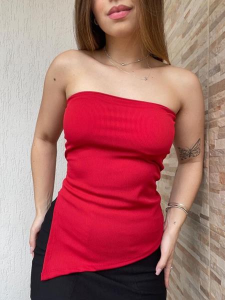 A blusa tomara que caia assimétrica é a peça que une modernidade e estilo em um design único. Produzida em tecido ribaninha, garante conforto, elasticidade e caimento perfeito ao corpo.